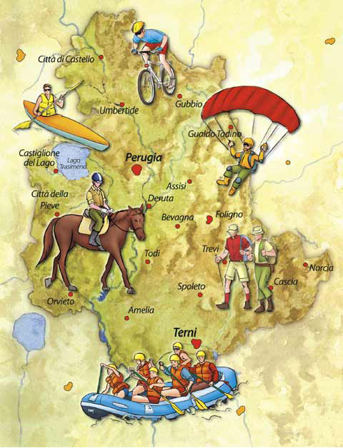 La molteplicità di aspetti storici-artistici-culturali e paesaggistici che caratterizzano questa regione, definita non a torto il "cuore verde d'Italia", non rende semplice il decidere ciò che si vuole andare a vedere, soprattutto se si giunge per la prima volta in Umbria. A questo proposito, per offrire un'immediata carrellata di quello che la regione offre, si propongono 4 percorsi: