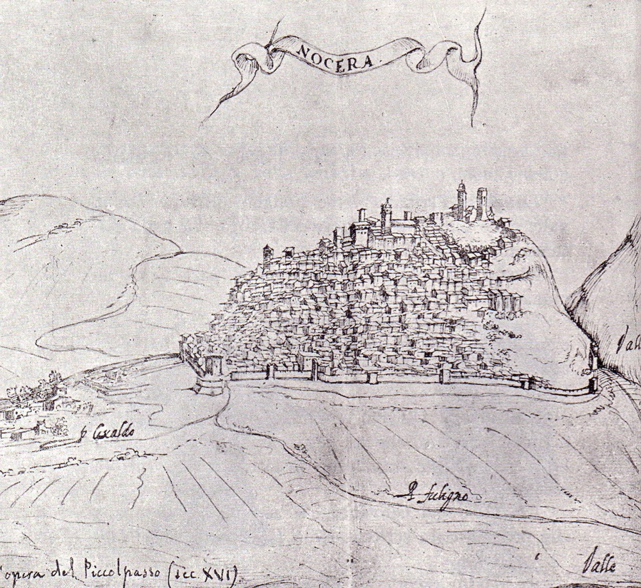 Posta su uno sperone di roccia, in un territorio prevalentemente montuoso, a dominio dell’antica via consolare Flaminia e della confluenza del torrente Caldognola con il fiume topino, Nocera fu fondata dagli Umbri nel VI secolo a.C con il nome di Noukria (nuova costruzione).