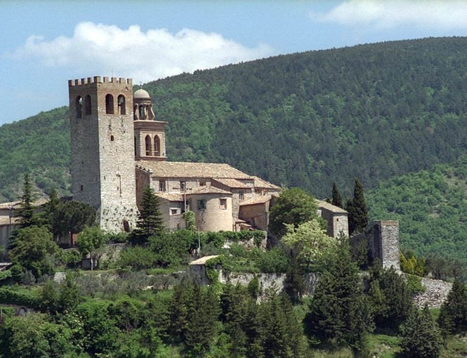 l’assoggettarono al Ducato di Spoleto, nell’850 eressero la cittadina a “Contea” dell’imperatore Lotario, concedendola in feudo ad uno dei figli del duca di Spoleto che la fortificò con un impianto architettonico convergente verso la grande rocca, posta in cima al colle. Nel XII sec., divenuta Comune, con l’aiuto del vescovo Anselmo, si liberò del dominio del conte ma nel 1202 venne sottomessa da Perugia. Coinvolta nelle guerre tra la guelfa Perugia e la ghibellina Foligno, nel 1248 fu distrutta dagli eserciti imperiali di Federico II. Riconquistata da Perugia nel 1251 la cittadina ricostruì le sue mura difensive e ristrutturò il suo assetto urbanistico, così come oggi lo ammiriamo. Passata nel 1392 sotto il dominio dei Trinci di Foligno, nel 1439 la cittadina fu annessa definitivamente allo Stato della Chiesa, seguendone, da quel momento, le vicende sotto la legazione di Perugia. Di quel periodo, significativo è l’anno 1559, in cui venne fondato il seminario vescovile, che raggiunse, nel XVI sec., la facoltà di dare lauree. Sempre nel XVI sec., furono riconosciute le qualità terapeutiche delle sue acque sorgive.