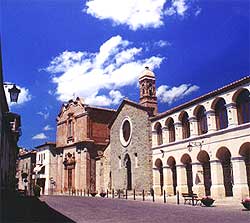 In piazza San Francesco, sorge la Chiesa di San Francesco del XIII sec. con l’annesso chiostro del XIV secolo. Al suo interno custodisce una tela del XVI sec. eseguita dal Pomarancio ed una statua di San Rocco attribuita a Michelozzo Fiorentino. Acanto sorge la Chiesa di Santa Croce, del XVII sec., con un ricco altare barocco, una “Deposizione dalla Croce” del 1515 di Luca Signorelli ed una “Madonna e Santi” del Pomarancio. Altra chiesa, che merita una visita, è la Chiesa di San Bernardino, ricostruita nel 1768, in cui si conservano una statua lignea del Santo, attribuita al Vecchietta (XVI sec.) e dipinti del XVII secolo. Per quanto riguarda i palazzi, segnaliamo quelli del periodo Neoclassico (fine 1700 inizi 1800) rappresentati dal Palazzo Comunale, (già dei conti Ranieri di Sorbello) che custodisce una piccola raccolta di quadri e manoscritti provenienti dal convento di Monte Corona ed il Palazzo delle Poste, con opere del XIX sec. di Giovanni Santini. Il Teatro dei Riuniti, costruito nel 1805 su progetto di Giovanni Cerrini, costituisce un pregevole esempio di architettura ottocentesca, oggi attivo luogo di spettacoli teatrali.