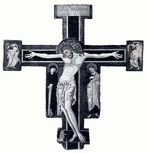 L’affresco di destra rappresenta una crocifissione con la Vergine e S.Giovanni Battista; al di sotto sono raffigurati S. Sebastiano e S.Rocco, protettori contro la peste. L’opera è attribuita alla scuola di Fiorenzo di Lorenzo (1492). Nella sala del Capitolo, utilizzata per le riunioni dei monaci, oltre alla crocifissione attribuita a Meo de Siena, c’è un altro dipinto, presumibilmente dello stesso autore, raffigurante la Vergine in trono con bambino ai cui piedi è raffigurato l’abate Trasmondo. A fianco c’è un altro dipinto in cui è effigiato S. Benedetto che ha in mano il libro della Regola monastica. Nella stessa stanza sono state poste tele, di epoche successive, raffiguranti una Madonna della misericordia e una allegoria della castità.
