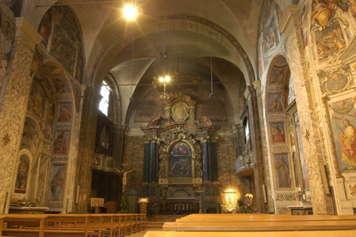 Tracce di affreschi sono anche sulla fascia di parete immediatamente sovrastante Alle pareti sono appesi alcuni dipinti tra i quali una tela con le stimmate di S. Francesco (sec. XVII), una Gloria della Vergine e Santi (sec. XVIII) e una Sacra Famiglia (copia da Giulio Romano).