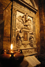 In basso a destra è un bel tabernacolo in marmo di Francesco di Simone Ferrucci da Fiesole con raffigurazione del Padre Eterno tra gli Angeli 1487) .