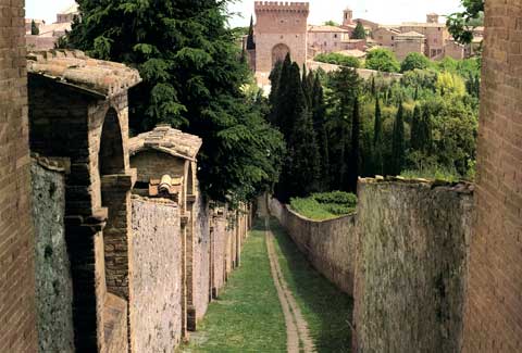 «et sancti patris fratris Egidii, qui moram contraxit ibidem pro Dei reverentia et obiit» – che aveva dimorato a lungo in preghiera in quel luogo e vi era morto. Ad un soggiorno del beato Egidio nelle case dei Coppoli accenna un documento di poco più antico, del 4 gennaio 1268, che porta la datazione topica «in trasanna domus domini lacopi [Coppoli] supradicti, que est posita in Colle Pastine, qui dicitur Collis beati Egidü». Di fra Egidio si conosce la data di morte, avvenuta a Perugia il 23 aprile 1262, ma nessuno tra i primi biografi rammenta il luogo esatto della morte. Il suo corpo fu tumulato nel transetto meridionale della chiesa di S. Francesco al “prato”, in uno splendido sarcofago paleocristiano – ora utilizzato come mensa d’altare nell’oratorio di S. Bernardino – ornato da un bassorilievo con la Traditio legis. Prima di morire Egidio aveva espresso il desiderio di rivedere la Porziuncola, ma i magistrati di Perugia si opposero al progetto e fecero presidiare la cella dell’eremita nel timore di perderne il corpo; il frate, infatti, era circondato da una fama di santità, per essere stato uno dei primi compagni di san Francesco e per le frequenti estasi mistiche di cui era andato oggetto. Egidio, che aveva anche il dono della profezia, mandò a dire ai perugini che le campane non avrebbero suonato né per la sua canonizzazione né per grandi miracoli; da lui non era da attendersi altro segno che quello di Giona. Una volta morto, i perugini cercarono una pietra p