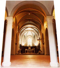 er dargli una degna sepoltura e trovarono una cassa marmorea nella quale era scolpita la storia di Giona; compresero allora di essere stati beffati dallo spirito arguto del frate. Questa arca in pietra fu vista da Salimbene de Adam da Parma, che visitò Perugia nel 1265 e ne fece cenno nella sua Cronica. Di fra Egidio la storiografia francescana ci ha tramandato alcune leggende agiografiche e una raccolta di detti traboccanti candore e saggezza popolare, ma anche critiche feroci della svolta clericale impressa all’Ordine negli anni successivi la morte del santo fondatore; come quella volta che disse con fare canzonatorio ad un frate predicatore: «Bo bo, id est, multo dico, et poco fo»; o quando bollò l’eccessiva importanza assegnata all’insegnamento dei frati nell’Università di Parigi: «Parisius, Parisius, ipse destruis ordinem Sancti Francisci». Fu soprattutto una figura bellissima di una stagione eroica che vide il giovane Francesco tentare la strada di una radicale proposta di vita cristiana, affiancato da un gruppo ristretto di seguaci che seguendo il suo esempio praticarono il rifiuto delle ricchezze materiali e la pratica del lavoro manuale. Nel romitorio di Monteripido è ambientato un episodio edificante, probabilmente apocrifo, che vide il beato Egidio contendere con il ministro generale e futuro santo Bonaventura da Bagnoregio. Una volta fra Egidio disse a san Bonaventura: chiesa di San Francesco del Monte: interno «Padre mio, molte grazie ci ha fatto Dio, ma noi che siamo semplici e idioti, che siamo privi di tutto, cosa potremo fare per salvarci?». Rispose san Bonaventura: «Se Dio concede all’uomo la sola grazia di poterlo amare, questo basta». Allora disse fra Egidio: «Un idiota può amare quanto un letterato?». Rispose san Bonaventura: «Una vecchierella lo può più di un maestro di Teologia». Allora fra Egidio corse pieno di fervore nell’orto, verso la porta che guarda verso la città, e gridò: «Povera vecchierella, semplice e idiota, ama il Signore nostro Dio e potrai diventare più grande di fra Bonaventura». E restò rapito in estasi per tre ore.