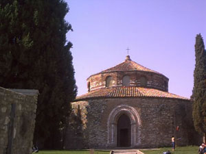 La chiesa paleocristiana (più propriamente S. Michele Arcangelo), la più antica di Perugia, sorge in uno scenario suggestivo, a ridosso della cinta muraria medievale e in posizione eminente sulla città con la quale doveva essere in rapporto visivo prima dell’edificazione del borgo. Costruita a croce greca, alla fine del secolo V o nei primi decenni del VI, è a pianta circolare, con la parte centrale più elevata e coperta da tetto a tenda. Delle aggiunte e manomissioni apportate all’edificio nei secoli, rimosse con restauro che ha rimesso in luce le strutture originarie, rimane il portale gotico trecentesco. L’interno ha la struttura della chiesa di S. Stefano Rotondo a Roma, cioè un anello circolare con tetto visibile; nel mezzo un tamburo che poggia su 16 colonne antiche con fusti diversi per altezza e materiale (granito, cipollino, marmo nero) sormontate da capitelli romani