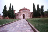 reimpiegati, corinzi e figurati, di vario tipo e datazione; il tetto è sorretto da otto archi portati da colonnette pensili murate, aggiunte nel ‘300 come alcuni affreschi ancora presenti sulle pareti del tempio.