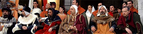 In leale tenzone scendano, nello campo delli giochi, li habil cavalieri di Mezule, Fraporta, Santa Maria per la conquista dello hambito palio, simbolo de forza et e maestria, nello modo che, lo terziere tucto dello vincitore, ne