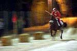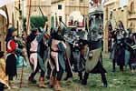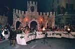 lungo le vie cittadine, rese ancora più spettacolari da scene e giochi di luci e fuochi; i cerimoniali medievali, ripristinati nella loro solennità originaria, quali i bandi di sfida, l’investitura dei cavalieri ed il loro giuramento di fedeltà al Rione per il quale gareggeranno;