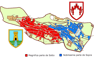 Le parti sono due unità territoriali e di popolo in cui, secondo antiche tradizioni, è idealmente suddivisa la Città di Assisi. Una denominata Nobilissima parte de Sopra, comprende i Sestieri di Porta Moiano, S. Rufino e Porta Perlici. L’altra chiamata Magnifica parte de Sotto, comprende i Sestrieri di Porta San Giacomo, Porta San Francesco e Porta San Pietro.