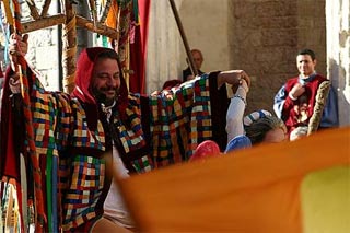 Dagli stupendi costumi che Simone Martini con precisione fotografica ci ha consegnato sulle pareti della preziosa cappella di San Martino (Basilica Inferiore di San Francesco) alle generose reinterpretazioni sul tema medievale, come lo straordinario costume del Carnevale utilizzato nel corteo 2005: l’allegro intreccio di mille strisce di colori lasciati liberi di giocare con il vento, quasi un Arlecchino “ante litteram”!! E poi le maschere in carta pesta del Sole e della Luna in abbinamento con costumi particolarmente originali per i colori e il tipo di materiale usato per la loro realizzazione.