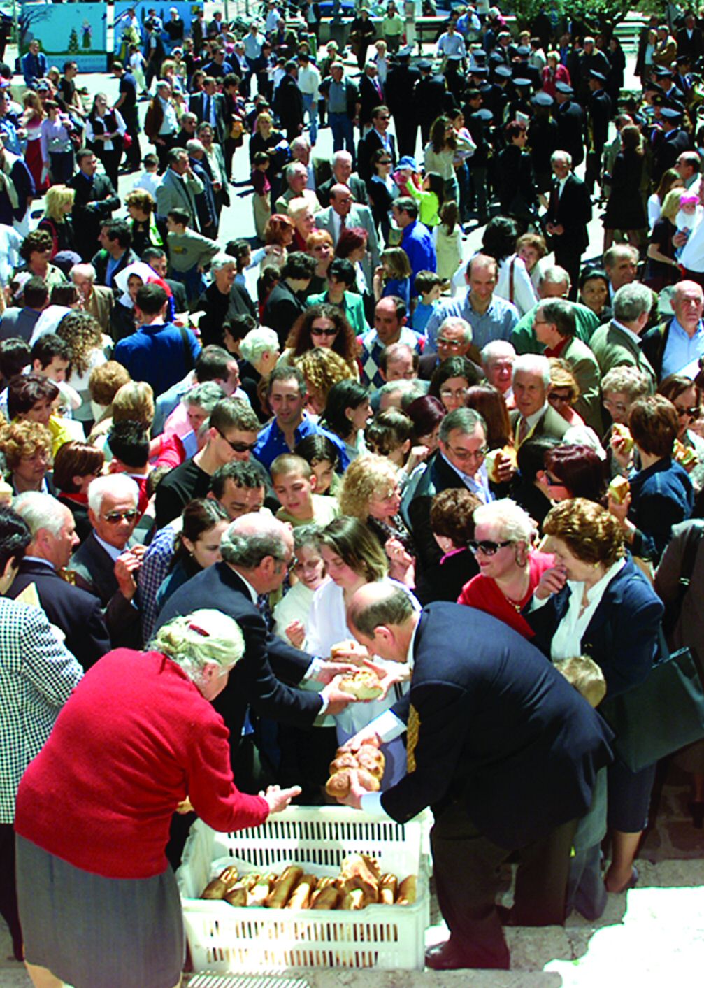 Questa festa ha origine dai riti pagani dei romani, celebrati a scopo propiziatorio in onore di divinità agresti come Ruggine, invocata per allontanare la ruggine dalle biade e per chiedere un abbondante raccolto. Con l’avvento del Cristianesimo, questa festa ha assunto valore liturgico di solennità in onore dei Santi compatroni Filippo e Giacomo, ai quali vengono offerti simboli e prodotti del lavoro dell’uomo: canestri, pani, fiori. La processione vede nelle prime file giovani con grandi crocifissi di legno. Dietro di loro sfilano delle ragazze in costume tradizionale: lunga gonna variopinta, camicia con pizzi e merletti, bustino, scialle colorato, grembiule ricamato e fazzoletto bianco in testa.