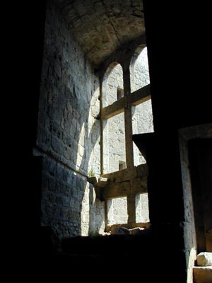 Foto: veduta di Montségur. Nel torrione si verifica un fenomeno alquanto singolare: la luce del sole non vi entra mai direttamente, tranne che al Solstizio d’estate. In quel giorno i raggi penetrano esattamente dalle feritoie (archères) della faccia orientale, attraversano il vano ed escono con altrettanta esattezza dalle feritoie sulla parete opposta. Il fenomeno dura solo pochi minuti ed ha fatto ipotizzare che la costruzione fosse una sorta di tempio solare, cosa che contribuisce all’alone di mistero che circonda il castello: i Càtari non praticavano, almeno palesemente, culti di tipo pagano.
