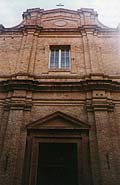 E’ il più antico di Città della Pieve ed in esso si notano delle figure geometriche, in una ricerca d i precisione e perfezione tipica del Rinascimento; sono delle forme circolari, in quanto il cerchio veniva considerato la figura perfetta. Il portale è stato recentemente restaurato. Subito dopo incontriamo altri edifici moderni a ulteriore testimonianza delle distruzioni dell’ultima guerra. Al di fuori della porta, sulla destra la Chiesa del Beato Giacomo Villa. Fu edificata a partire dal 1400 e poi definita nel corso del 1600; il suo interno ha, infatti, una forma ovoidale tipica dell’architettura barocca, un’architettura molto più complessa rispetto a quella rinascimentale. Dietro all’altare maggiore, troviamo una bella tela della fine del 1700 dedicata al Beato, nella quale si nota una ricostruzione non realistica di Città della Pieve. Probabilmente è una rappresentazione del paese nel periodo in cui visse il Beato Giacomo, infatti si notano la Torre Civica e la Torre Verri, ma non c’è il campanile accanto alla Cattedrale. Sotto alla tela, in una grande urna, che ha le staffe per essere portata in processione, c’è il corpo del Santo imbalsamato.