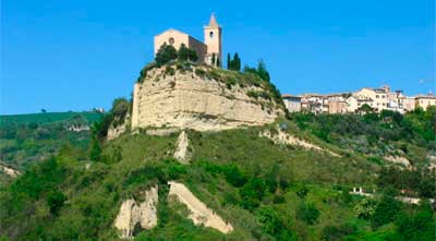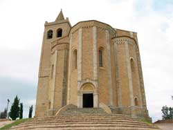 È uno dei maggiori monumenti dell’intera regione Marche. Sita all’estremo occidentale dell’abitato, risulta circondata su tre lati da altrettanti dirupi che la ritagliano esaltandone l’imponenza e aprendola allo sguardo di due vallate. La grande costruzione in laterizio in stile romanico-gotico si deve al maestro Albertino che la eresse nel 1330 sulla preesistente piccola chiesa benedettina.