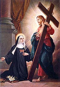 Chiara già da un paio d’anni era afflitta da una grave aridità: credeva di essere la peggiore delle creature, abbandonata da Dio e come disperata e fu così per undici anni. Alla fine del 1291 morì la sorella e Chiara, nonostante le sue preghiere e le lacrime, fu eletta abbadessa e fu subito e sempre madre e maestra delle Sorelle. Fu durante la Crisi, all’inizio del 1294, che Cristo le apparve portando una grande croce e le disse: “Ho cercato un luogo forte per piantare questa croce; qui e non altrove l’ho trovato, se vuoi essere mia figlia, devi morire sulla croce”. Da quel momento sentì nel suo cuore sensibilmente e per sempre la croce.