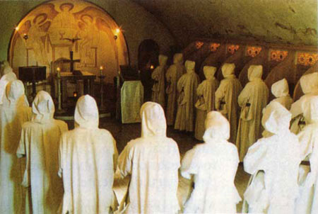 Perché voi monaci volete anticipare, in un certo senso, questo incontro? «E’ un atto d’amore. Ci sentiamo chiamati personalmente fin d’ora. No a tutta la chiesa è richiesta questa anticipazione ma solo ad alcuni. Comunque tutti i cristiani, poiché hanno ricevuto il battesimo, portano nel loro intimo questa presenza divina che vivifica tutte le dimensioni della vita e sono tenuti a coltivarla. Noi monaci vogliamo testimoniare che Dio basta per una persona umana, perché il suo amore può riempire tutta l’esistenza. Non è troppo duro, no. E’ duro solo quando manca l’amore. In fin dei conti, non facciamo niente di speciale: mangiamo, lavoriamo, dormiamo, viviamo la quotidianità di tutti, ma sotto lo sguardo di Dio».