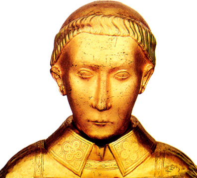 | Busto reliquiario di Santo Stefano, in rame dorato, opera di oreficieria senese (inizio sec. xv) Siena, S. Maria della scala |