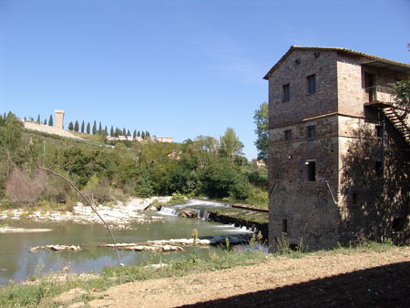 A Torgiano … è in funzione un molino collocato all’interno di quello che si può ritenere un raro reperto della più antica tradizione storica e culturale di questa regione: l’unica torre trecentesca in Umbria che si erga in mezzo all’acqua per circa tre piani. Il fatto che si trovi poco sotto e in vista del campanile della chiesa e della torre squadrata, emblema della città, ne aumenta il fascino.