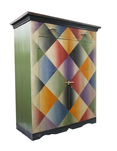 Mio padre lavorava in tipografia e per vari motivi decise di lasciare. Imparò un nuovo mestiere nella falegnameria. All’inizio gli affidavano le lucidature, poi ha cominciato costruendo piccoli oggetti con materiali vecchi sempre con accenni di colore e infine siamo arrivati a questi mobili che sono pezzi unici. Mio padre è pittore e con un gruppo di artisti nel ’78 fondò il gruppo “13 x 3” con Meoni, Ottaviani, Pellegrini e Rossi. Hanno fatto molte mostre insieme ed è anche grazie a loro se oggi a Città di Castello c’è un bel fermento di artisti che prendono spunto dall’arte applicata.