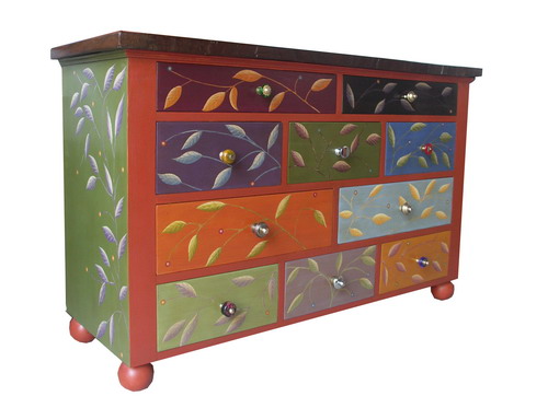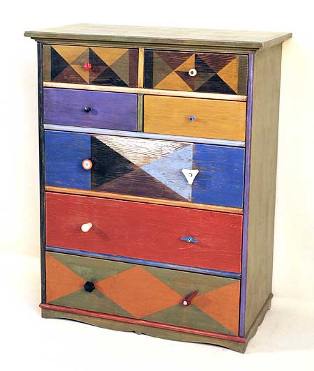 Passare dalla tipografia alla falegnameria artistica il salto è grande. Non basta l’intuito e la fortuna, ci vuole passione. La passione ha sempre accompagnato Elio Mariucci, artista e pittore che trent’anni fa, a Città di Castello fondò “Legno & Colore”, laboratorio artistico di mobili prodotti da materiali di scarto. I pezzi forti della sua produzione sono in esposizione alla “Festa del Bosco”, dal 31 all’1 novembre, a Montone nell’ex chiesa di San Francesco. Cassettiere colorate con maniglie riciclate da lampadari e bottoni, fantasie che riprendono motivi geometrici ognuna diversa dall’altra in originali design. Veronica Mariucci, la figlia, ha ereditato la passione del padre, il gusto nella scelta dei colori e l’inventiva che mette nei suoi mobili portando avanti un mestiere in bilico tra l’artigianato e l’opera d’arte.
